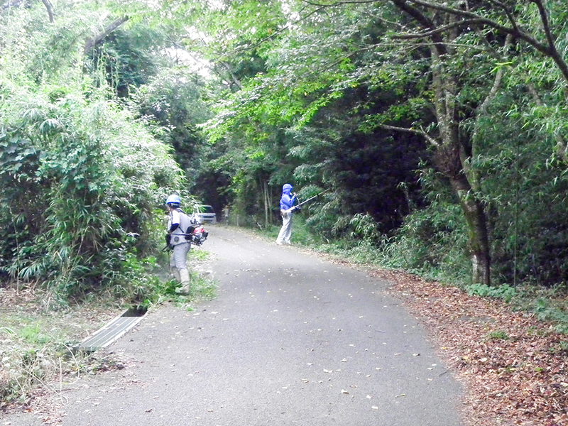 参加者は、日差しが強い中、草刈り作業などに汗を流した。