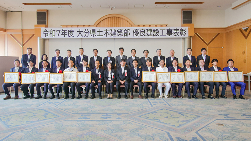 県土木建築部は26日、県庁で2025年度優良建設工事表彰式を開いた。土木建築部長表彰が9工種15工事14社、工事検査室長表彰が5工種13工事13社の計14工種28工事25社(複数受賞あり)が表彰された。
