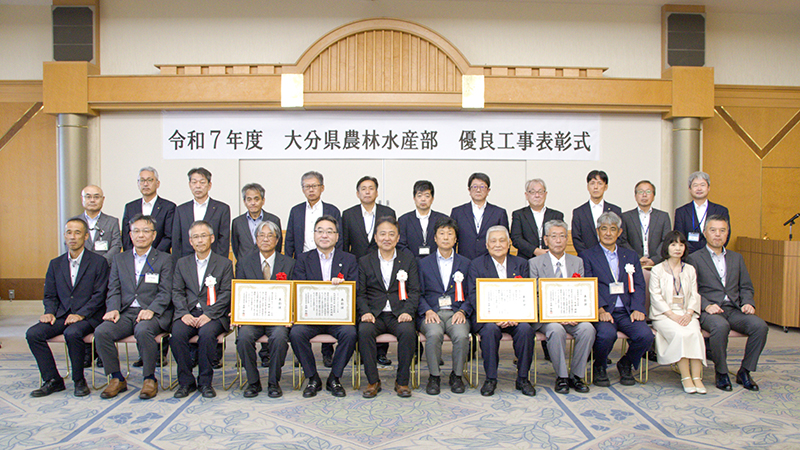 県農林水産部は26日、県庁で2025年度優良工事表彰式を開いた。受賞者は、農林水産部長表彰が5部門12社、工事技術管理室長表彰が4部門4社の計9部門16社が表彰された。