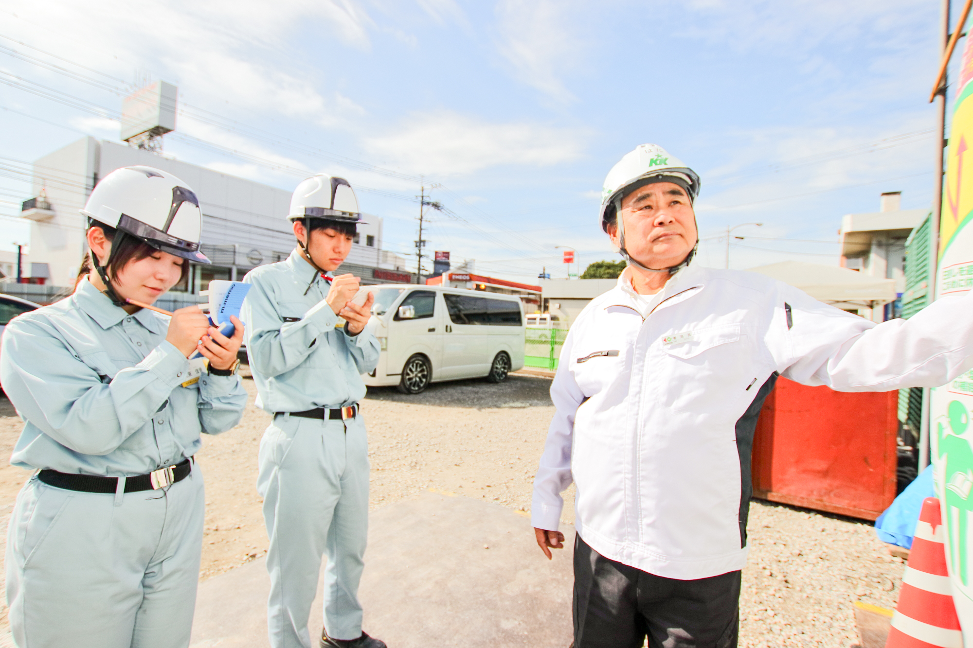 現場実習以外にも鉄筋の加工場、生コン工場の見学があり、同社が建設中の15階建ての新築マンション現場も訪れた。大野碧斗さんは「暑い中作業をしている姿を見て不安だったが、各対策がされており安心した。県内の建設会社での施工管理技士か、公務員を目指したい」、尾﨑謙友さんは「話を聞くのと現場を見るのでは違った。いろいろな人が携わっていることが分かり、勉強になった。県内の設計会社に就職したい」と話してくれた。