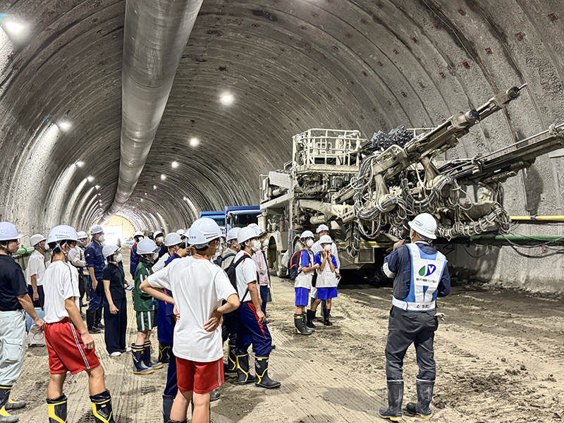 日田土木事務所は15日、中学生を対象にした土木未来教室を開催し、日田山国道路1号トンネルの建設現場見学会を行った。県中学校文化連盟主催の理科講座の一環で、豊後高田市、宇佐市、佐伯市、大分市から生徒17人が参加した。