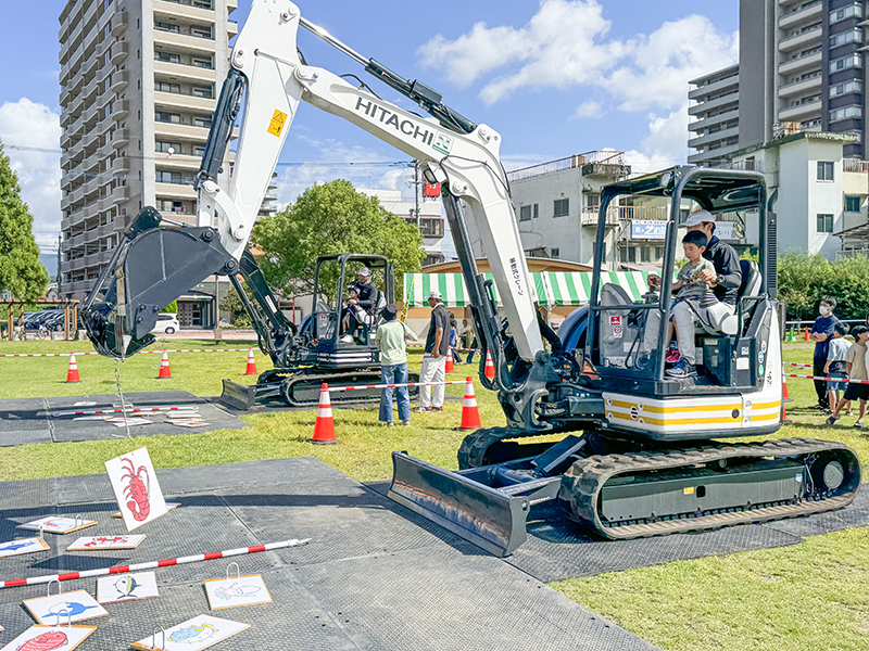 県建設業協会日田支部(河津龍治支部長)は5日、日田市民文化会館パトリア日田と中央公園で開催された「第12回日田市工業展」に合わせ、建設機械の運転体験などのイベントを開いた。