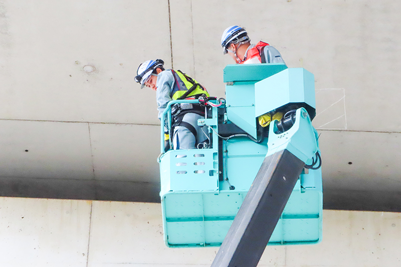 西日本高速道路エンジニアリング九州㈱(廣畑浩司社長)は28日、大分市宮河内の東九州自動車道宮河内高架橋で「点検グランプリ競技会」を初めて開催した。