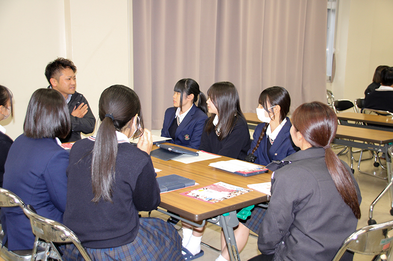 職業講話では、㈱野村建設の板井愛夏さん、柴田建設㈱の御手洗希海さんが、就職したきっかけや建設産業の魅力について話した。