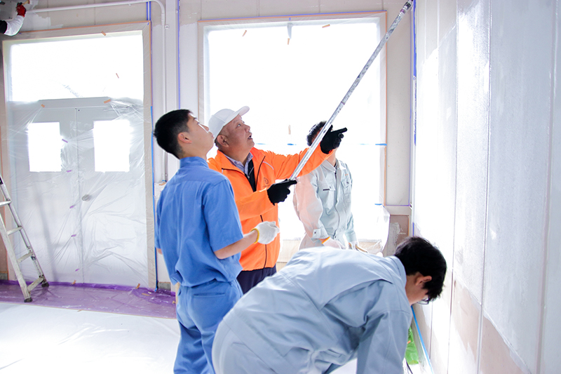 麻生理事長は「作業を通じて塗装に興味を持ってもらい、きれいになった実習室で勉強に励んでほしい。進路選択の中に塗装もあると思ってもらえたらうれしい」と話した。