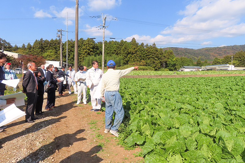 会員が、ナシとハクサイなどの畑地かんがいの現状を現地で研修することで課題解決と畑作振興につなげるのが目的。