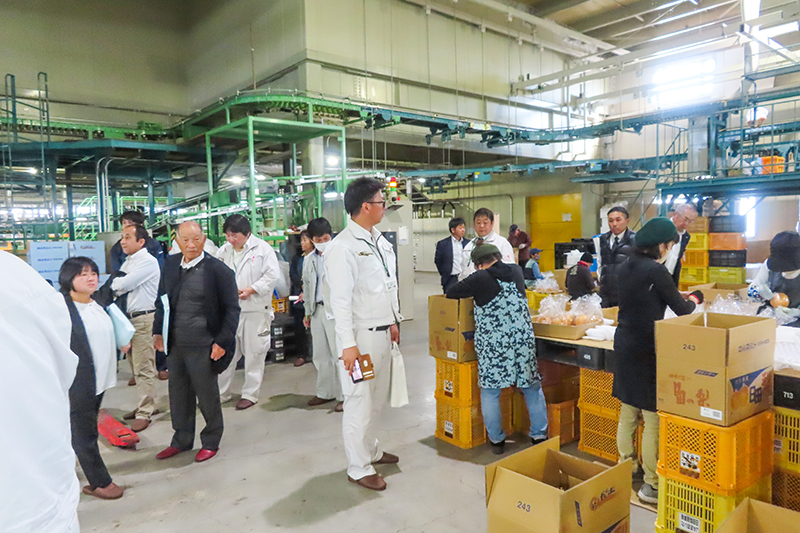 最後にナシの選果場を視察して、大玉の晩三吉の包装など出荷作業を見学した。