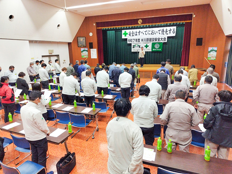 中津市の㈱川原建設と安全協力会は18日、本耶馬渓公民館で2024年度の安全大会を開いた。