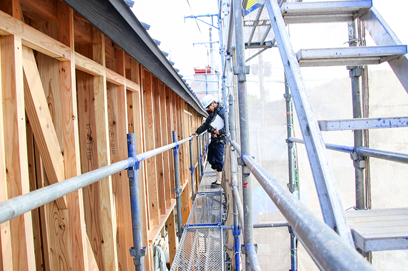 現場では、点検票に基づき、担当者から工事概要、当日の作業内容を聞き取り、足場や手すりの設置など工事箇所が適正に安全管理されているかなどを入念にチェックして回った。