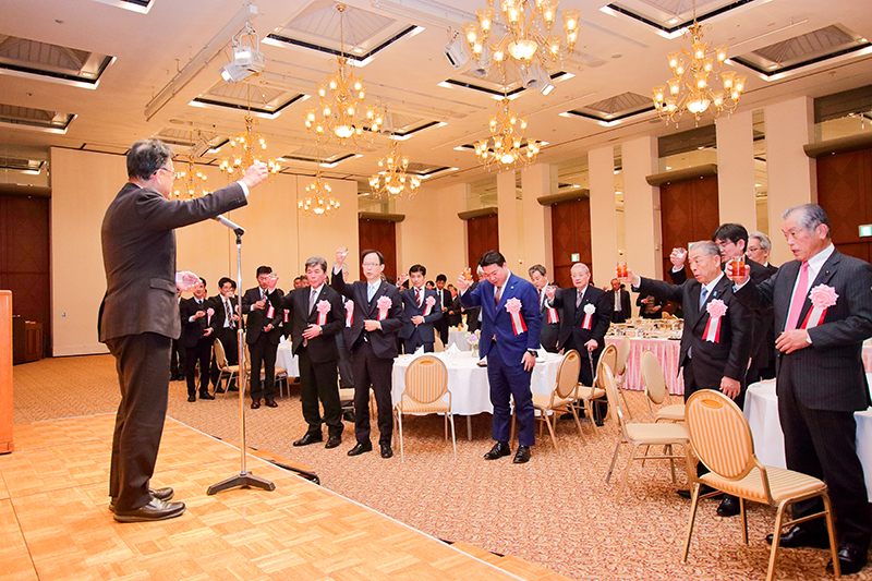 大分河川国道事務所の谷川征嗣所長の音頭で乾杯して歓談し、大分労働局の秋山雅紀局長の発声で万歳三唱して、会を終えた。