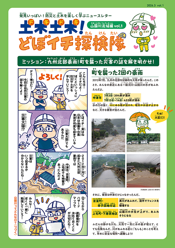 官民一体で制作する同レターは、長崎大学技術職員の出水享氏(通称・デミー博士)が運営する「teamどぼイチ」が発行元。山国川河川事務所、中津土木事務所、中津市建設土木課が協力し、中津市内の企業10社=㈱小川工業、㈱川原建設、㈱光成経済、㈱白石総合コンサルタント、㈱明光コンサルタント、㈲中岩建設、日進コンサルタント㈱、日豊サーベー㈱、西畑建設㈱、松本技術コンサルタント㈱―が協賛している。