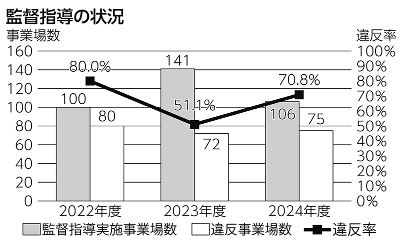 大分労働局は13日、外国人技能実習生の実習実施者に対する2025年監督指導の状況を公表した。 ...