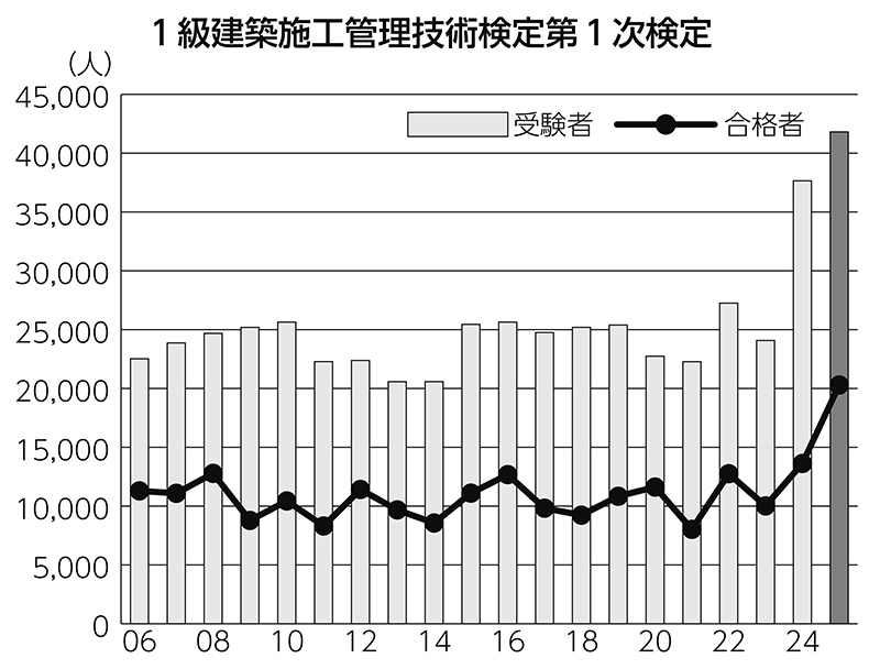 建設業振興基金は22日、2025年度1級建築・電気工事施工管理技術検定第1次検定の実施結果を発...