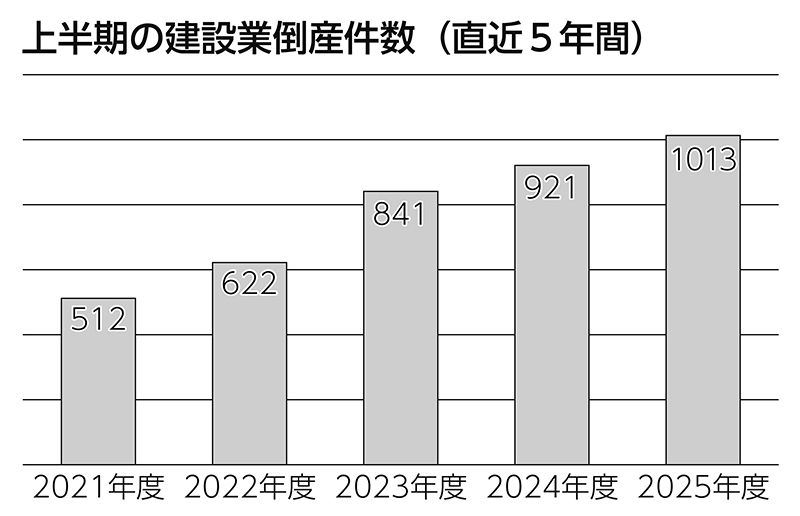 12年ぶりに1000件超 25年度上期の建設業倒産