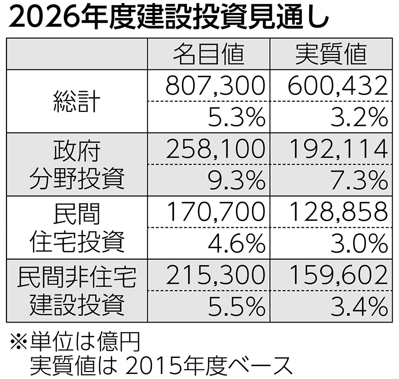 26年度の建設投資5%増 関税影響も設備投資は堅調