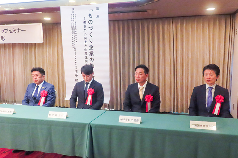 県は6日、大分市内で「おおいた働き方改革」トップセミナーを開き、働き方改革推進優良企業の4社を...