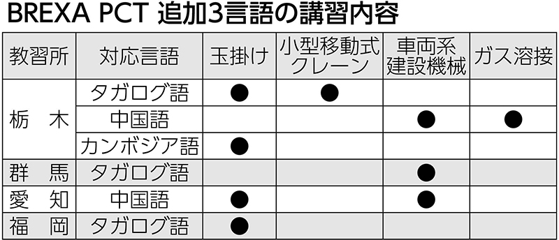 無料技能講習に3言語追加 BREXA PCTで提供開始