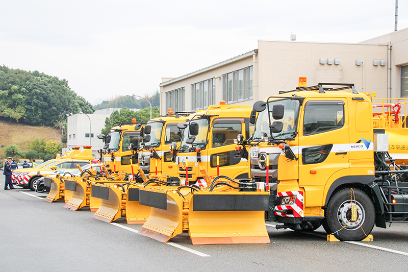 雪氷作業車の出動式 安全確保第一に〈NEXCO西日本〉
