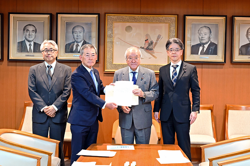 全国建設業協会(全建)の今井雅則会長は10日、自民党本部を訪れ、鈴木俊一幹事長ら党3役に202...