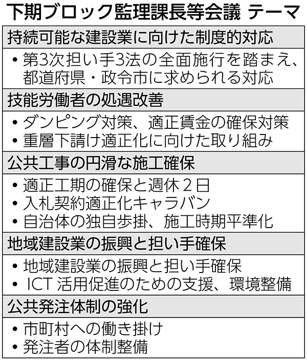 国土交通省は、17日から開始した2025年度下期ブロック監理課長等会議で、第3次担い手3法の全...