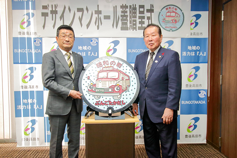 デザインマンホール贈呈 豊後高田の大分綜合建設