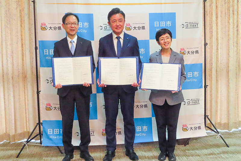 県と日田市は24日、県庁で㈱d―ネクスト(長野県長野市、廣田一博社長)と産業用地開発連携協定を...