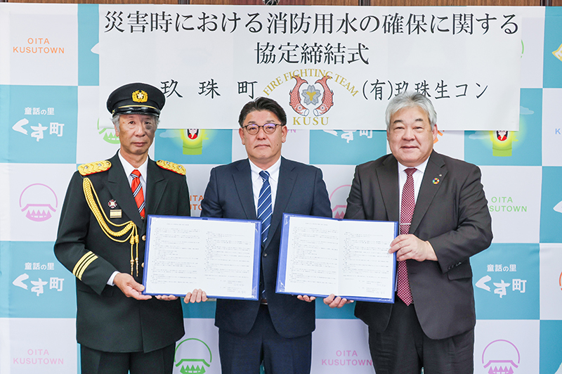 玖珠町は先に、㈲玖珠生コン(森重俊社長)と「災害時における消防用水の確保に関する協定」を締結し...