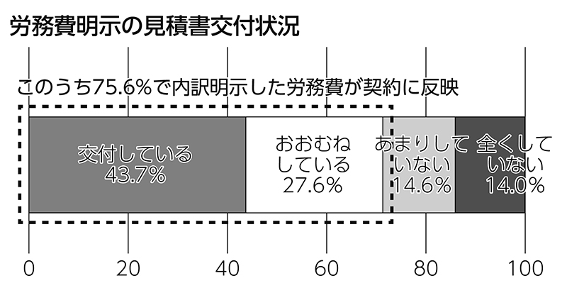 国土交通省が2025年度に行った下請取引等実態調査で、元請けに対する見積書の交付状況を調べたと...
