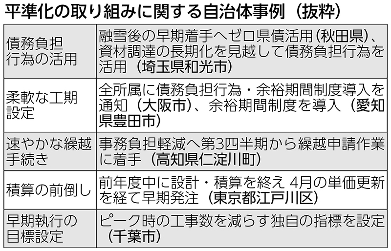 市町村の平準化事例集約 資材不足、豪雪対応にも効果〈国交省〉