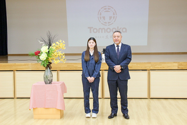 豊後大野市大野町の㈱友岡組(友岡誠一社長)は1日、2026年度の入社式を行った。式には新入社員...
