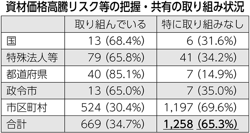 市区町村7割「取り組みなし」 資材不足・高騰のリスク共有