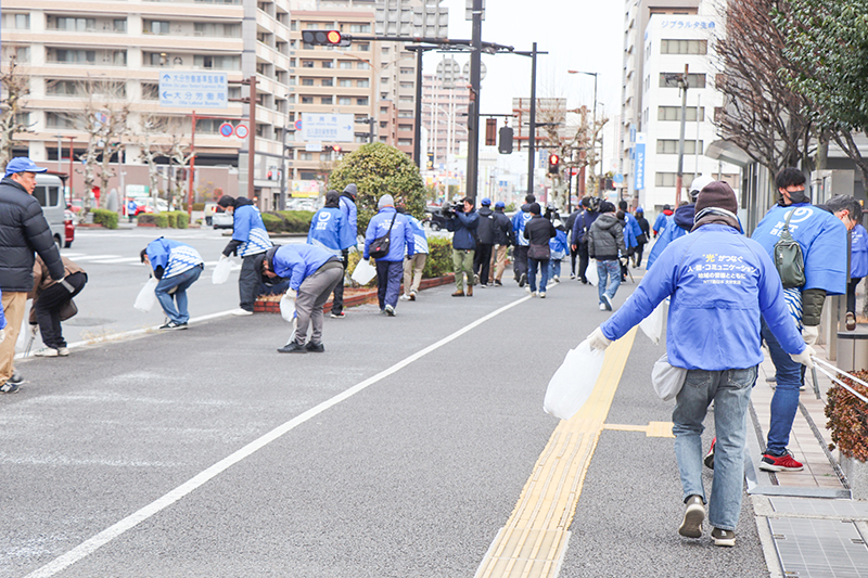 マラソンコースを清掃 NTTなど奉仕活動