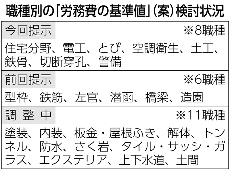 国土交通省は27日、改正建設業法に基づく労務費の基準値案を中央建設業審議会のワーキンググループ...