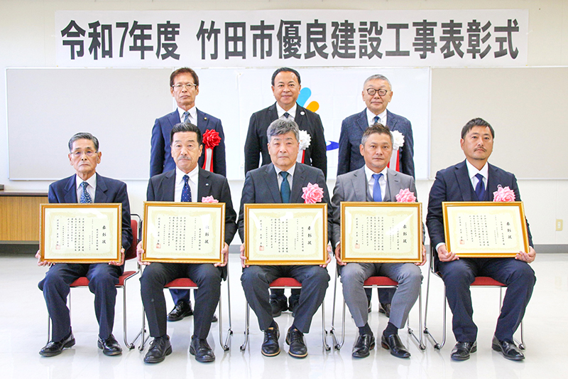 竹田市は10月28日、本庁舎で2025年度優良建設工事表彰式を行った。 市が発注し、24年...