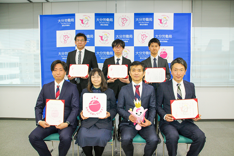 大分労働局(秋山雅紀局長)は27日、くるみん・えるぼし認定通知書交付式をした。協栄工業㈱、豊國...