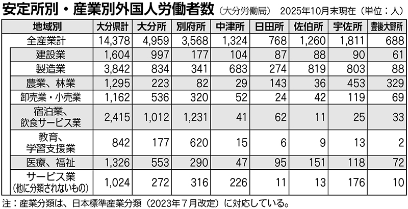 大分労働局(秋山雅紀局長)は1月30日、県内における2025年10月末時点の外国人雇用について...