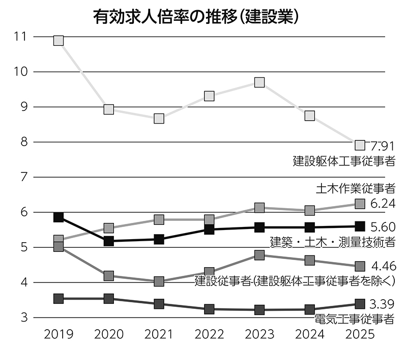 建設躯体工事は7・91倍 25年の有効求人倍率